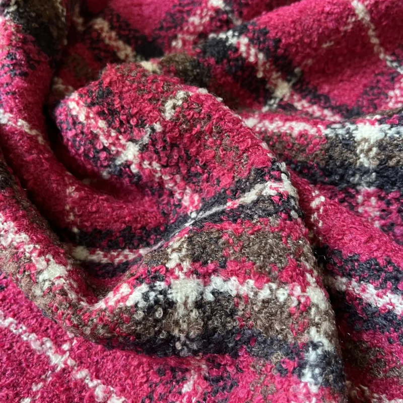 Ένα πολυτελές και ζεστό ύφασμα τύπου Τουίντ/Μπουκλέ, εμπνευσμένο από το κλασικό στυλ Chanel. Πρόκειται για ένα χοντρό, σταθερό ύφασμα, με ανάγλυφη, «σγουρή» ύφανση (μπουκλέ), ιδανικό για κομψά και δομημένα χειμερινά ρούχα.