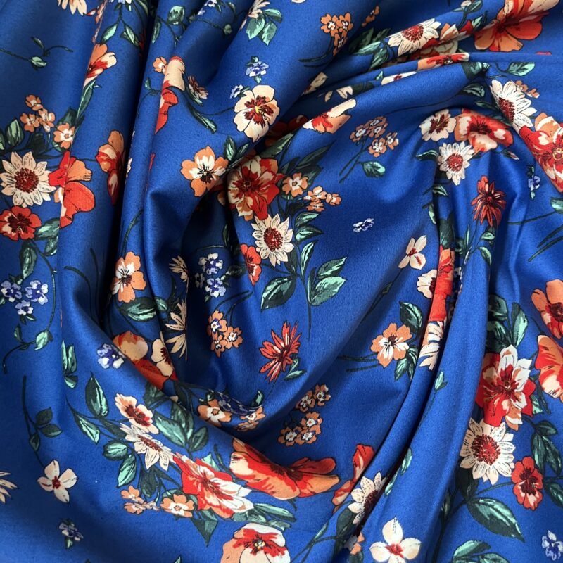 Καπαρτίνα Σταθερή – 100% Βαμβάκι – Φλοράλ με Μπλέ βάση