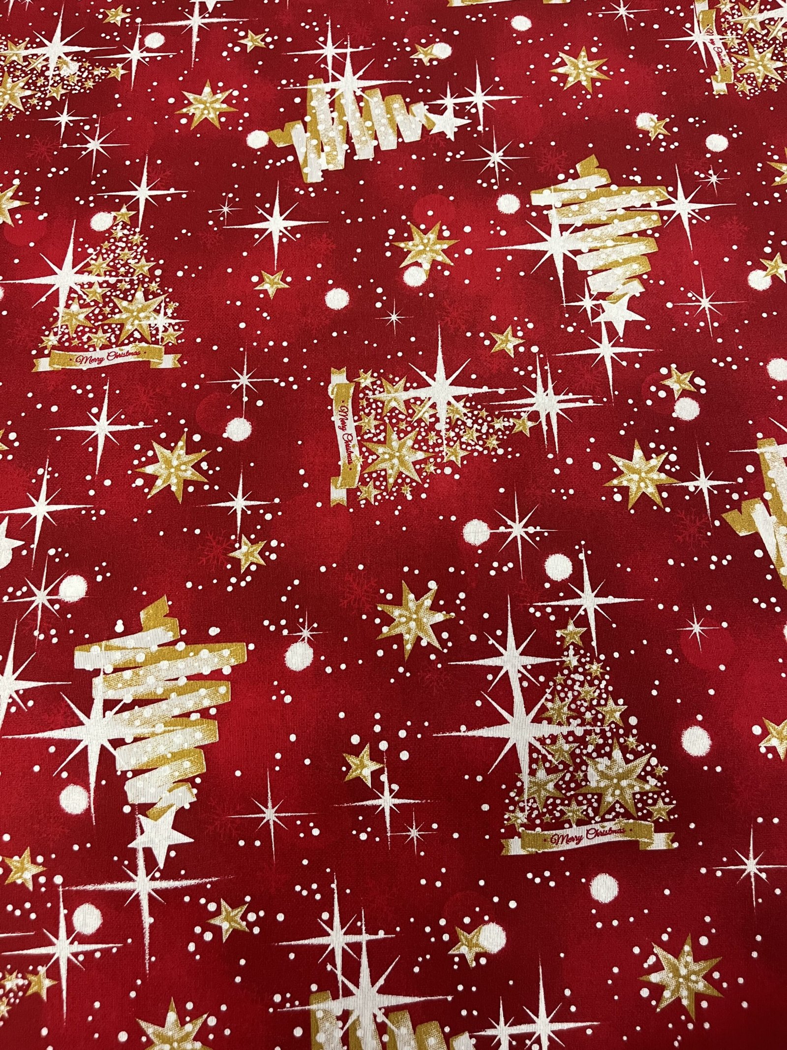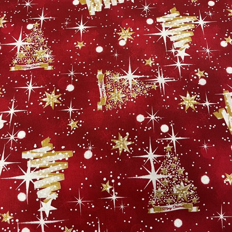 Λεπτό καραβόπανο – Χρυσά έλατα με Κόκκινη βάση