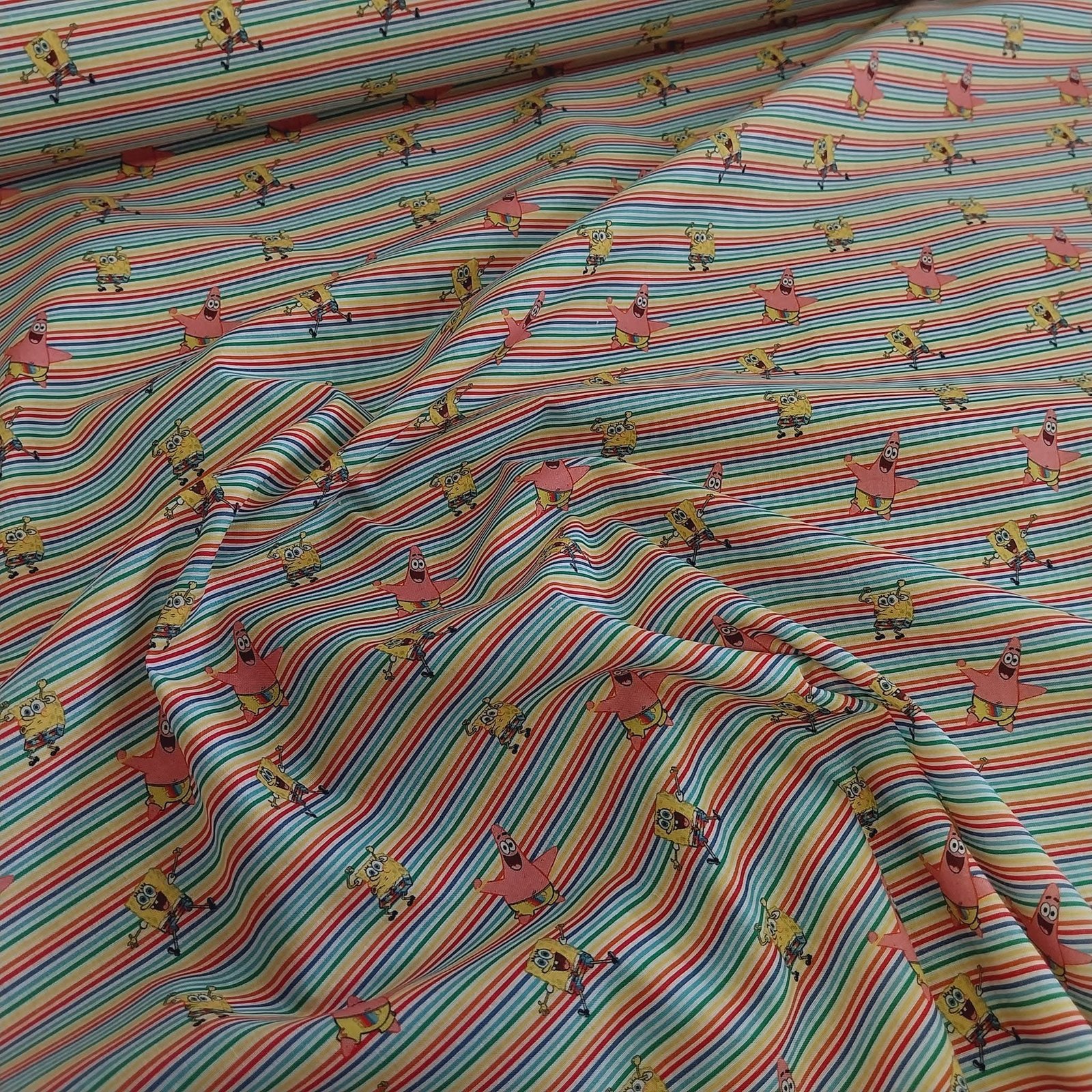 Ποπλίνα – 100% Βαμβάκι – Μπομπ Σφουγγαράκης & Πάτρικ – Ρίγες Ουράνιο Τόξο