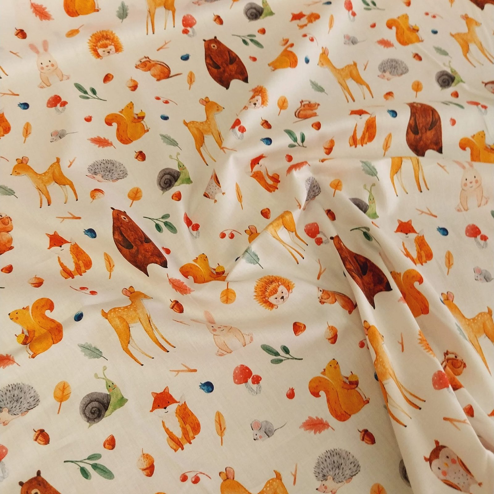 Ποπλίνα – 100% Βαμβάκι – Ζωάκια Δάσους – Αλεπού, Ελάφι, Αρκούδα
