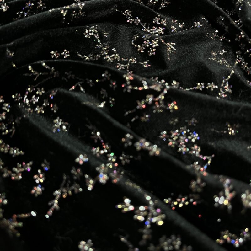 Βελούδο Σιφόν Ελαστικό – Μαύρο κεντητό με παγιέτα